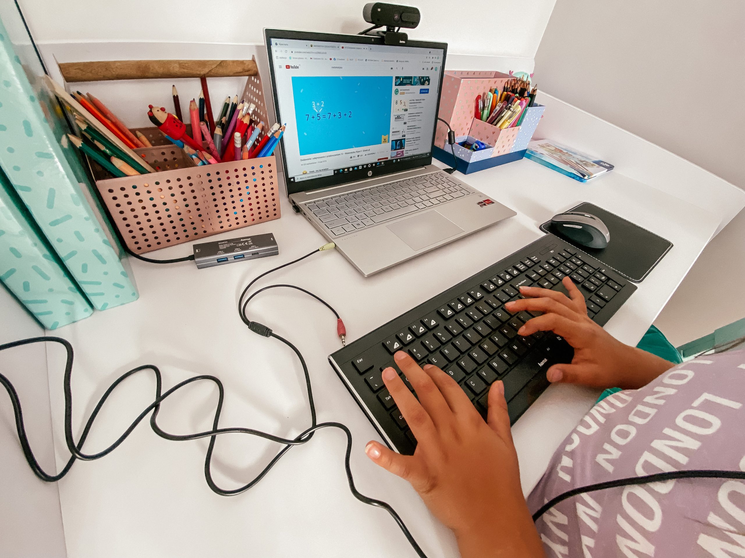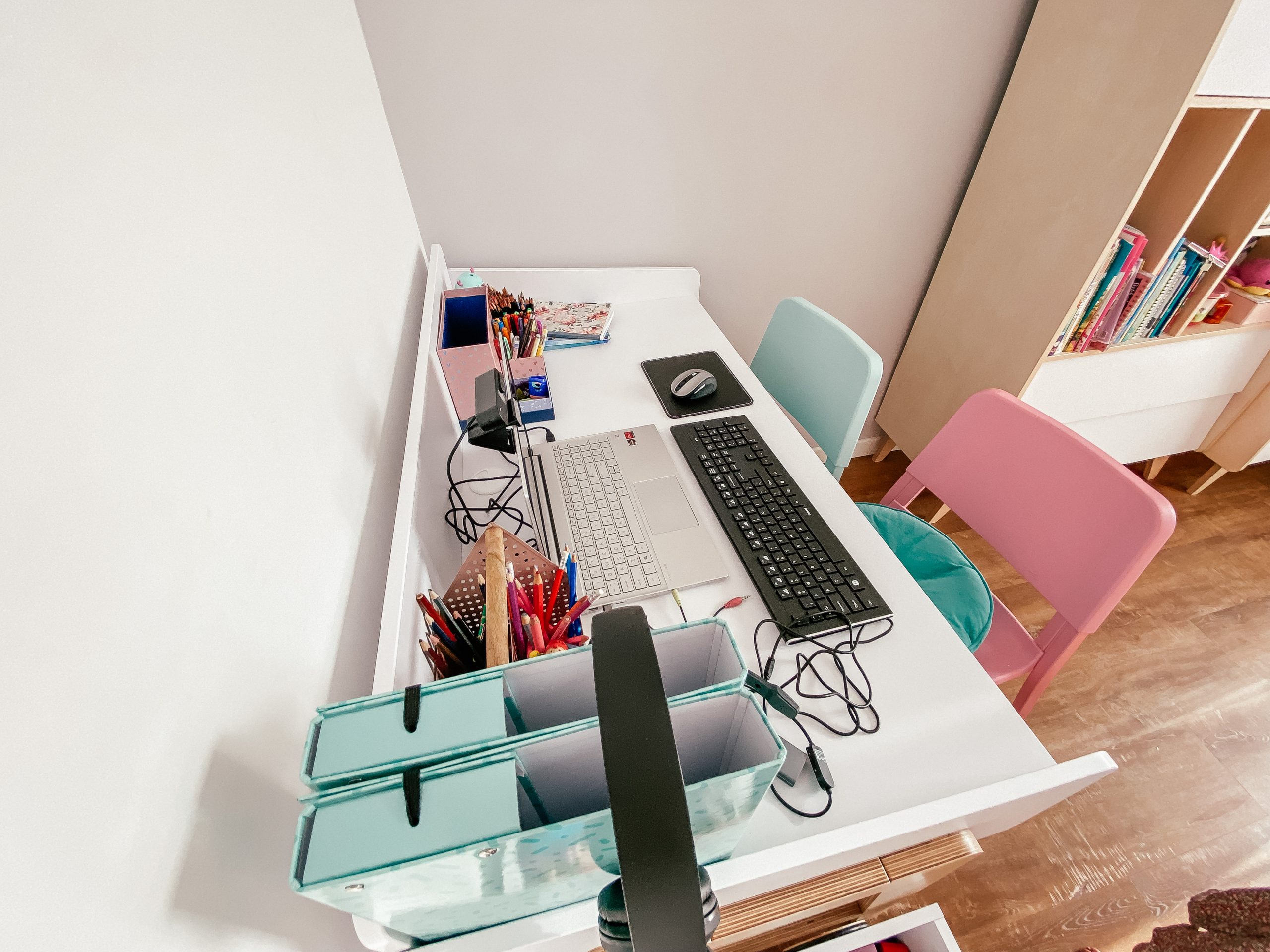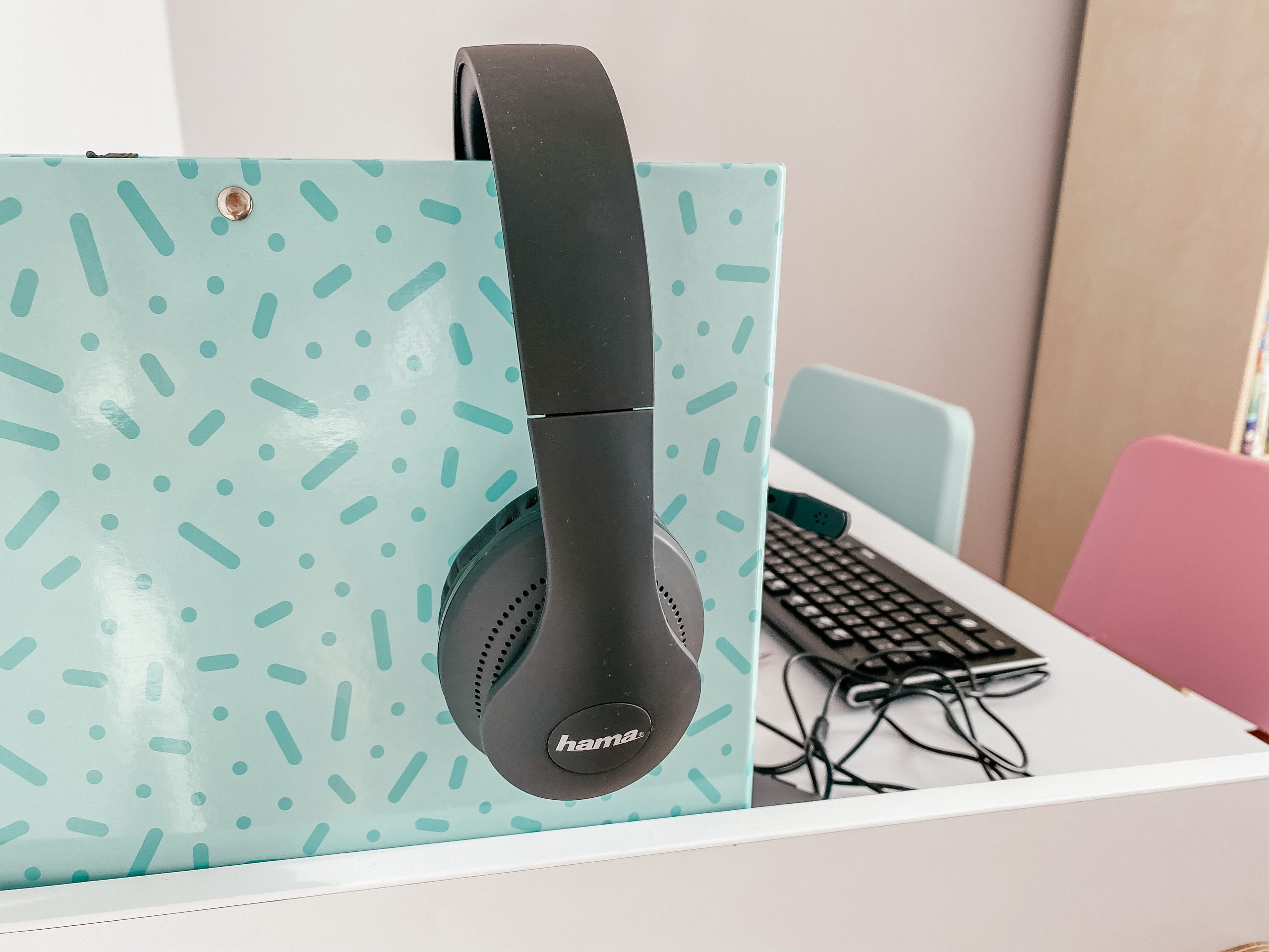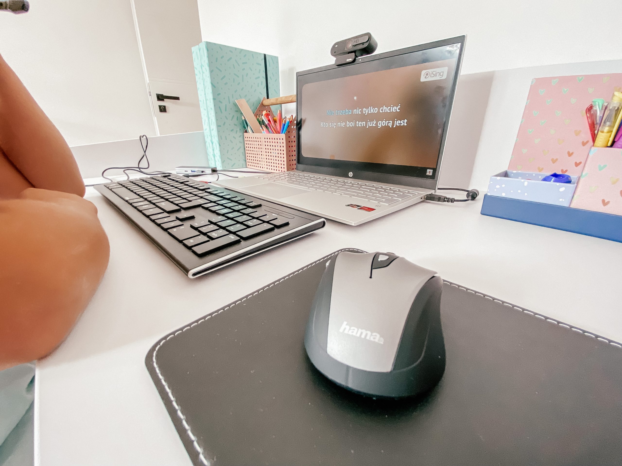 PRZYGOTOWANIE ZAPLECZA. Podczas zeszłego roku i w trakcie ostatniej nauki zdalnej totalnie nie byłyśmy do tego przygotowane. Wiki nie miała jeszcze biurka, więc wszystko rozgrywało się w salonie. Laptop co chwilę odmawiał posłuszeństwa – a to kamera się psuła, a to mikrofon…ogólnie wszystko było nie tak, jak być powinno. Teraz się przygotowaliśmy. Najpierw ogarnęłam biurko, żeby w ogóle Wiki miała komfort pracy (nawet odrabiając lekcje w swoim pokoju). A z pomocą marki HAMA – partnera tego wpisu – przygotowałam: kamerkę internetową C-600 Pro, dobre słuchawki multimedialne z mikrofonem HS-P200, klawiaturę bezprzewodową Cortino i myszkę MW-400 z solidną skórzaną podkładką , także z technologią radiową, bez kabla. Czyli zestaw, który jest niezbędny do tego, żeby nauka w domu była przyjemna i efektywna.