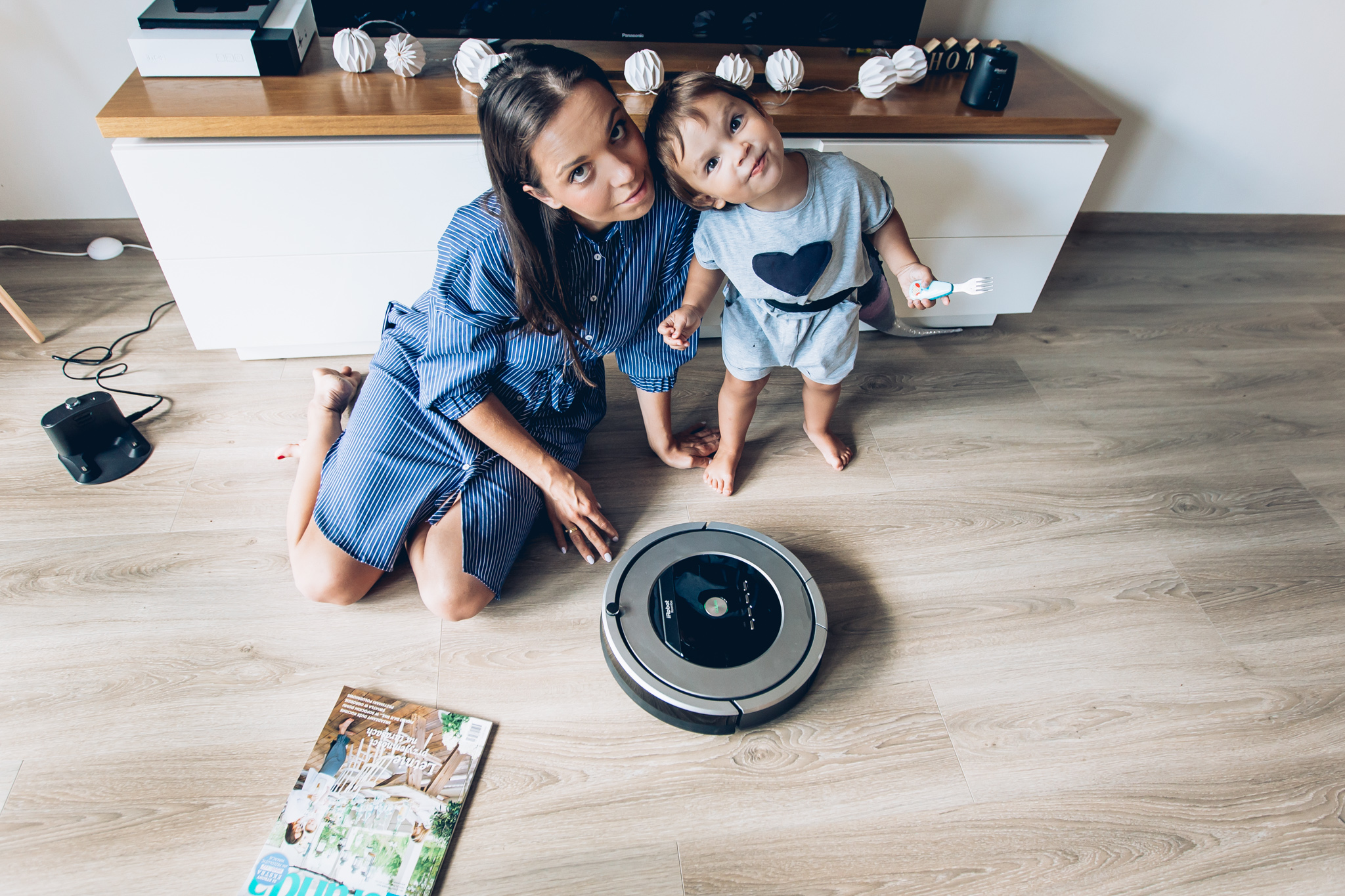 I tym oto sposobem mam w domu: Panią do sprzątania, która zetrze kurze i zrobi mi pranie, mam zmywarkę, która myje nasze brudne naczynia, mam robota kuchennego, co robi pyszne jedzenie, prawie sam, bez pomocy i mam inteligentnego robota odkurzającego, który zawsze odkurzy nasze mieszkanie, gdy wychodzimy z dziewczynkami z domu. Zaszalałam, co? O naszej Pani B. już Ci opowiedziałam, o zmywarce chyba nie muszę, o robocie kuchennym szykuję dla Ciebie oddzielny wpis, a dziś przedstawię Ci naszego zbawiciela iRobota Roomba 886! Bo co jak co, ale w nim to ja się zakochałam bez pamięci!
