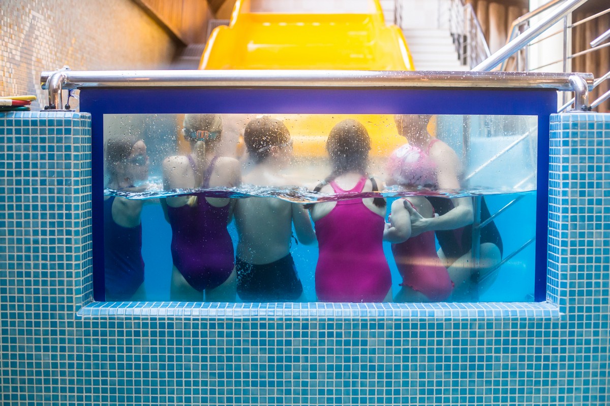 Lekcja dla dzieci była świetnie zorganizowana, przez Pana, który jednym słowem, wiedział co robi i jak to się robi. Fantastycznie umiał zająć się kilkuosobową grupką dzieci, a ilość zadań, które im zagwarantował, pozytywnie mnie zaskoczyła. Po godzinie nauki Wiktoria ze zjeżdżalni zaczęła zjeżdżać samodzielnie bez rękawków, poza tym udaje jej się już bez problemu pływać pod wodą. Tę umiejętność opanowała do perfekcji, a mam nadzieję tego lata, nauczy się pływać również na powierzchni. Trzymaj kciuki.