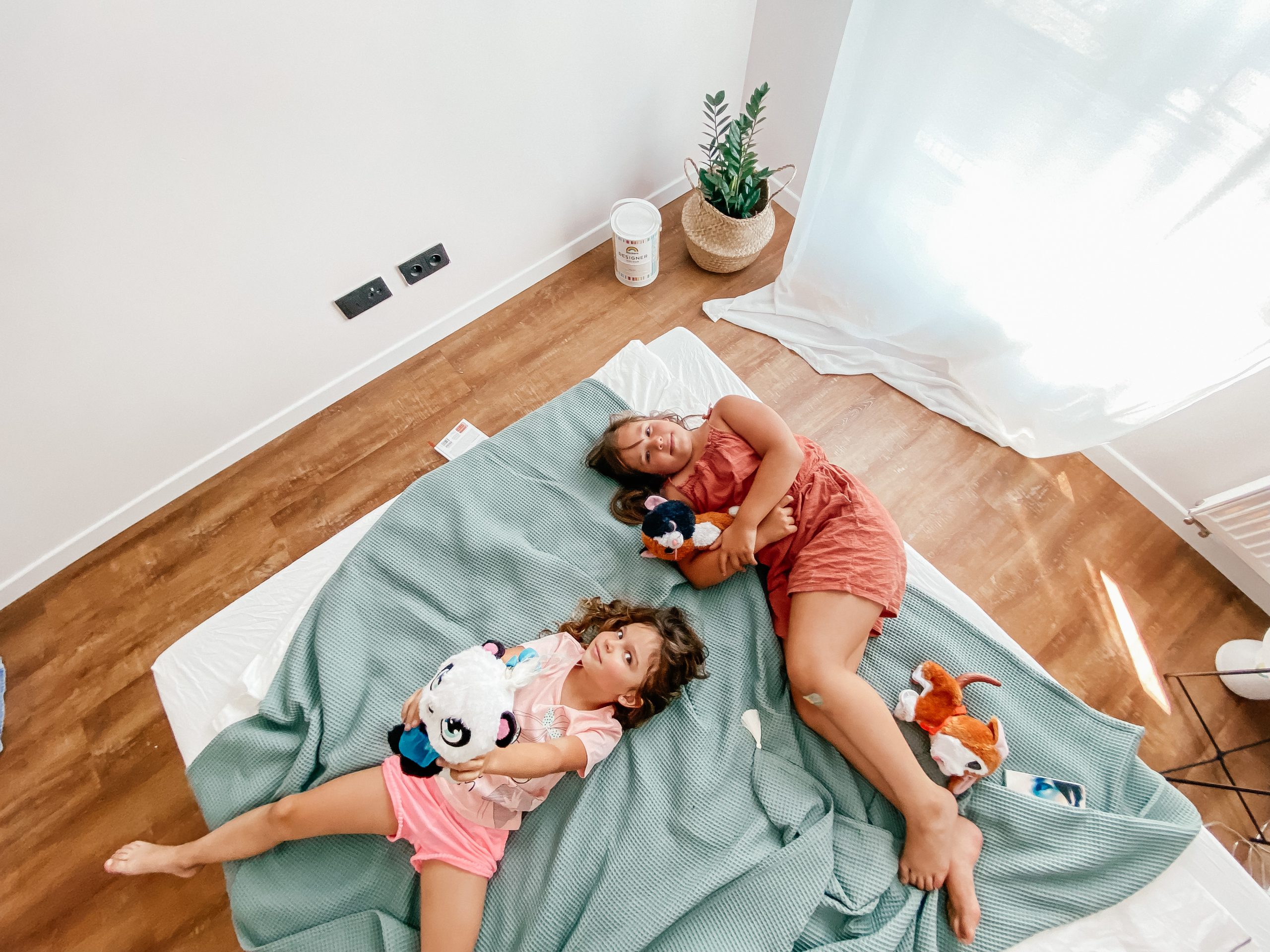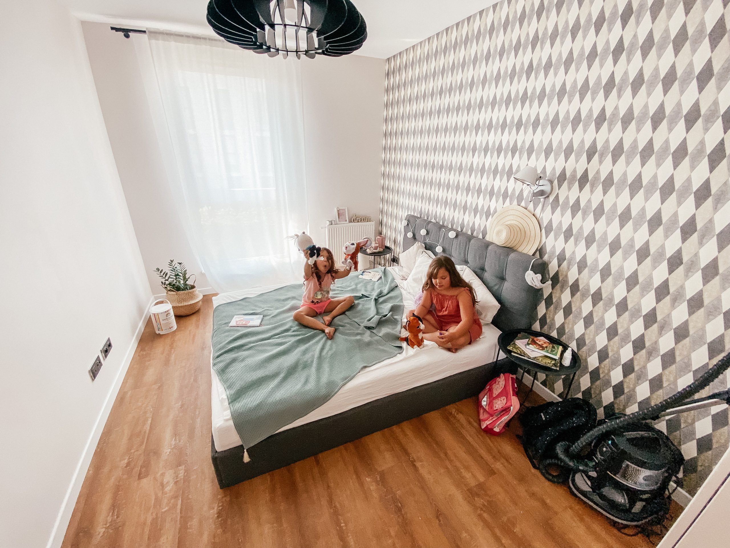 W gruncie rzeczy nie zmieniło się tutaj za wiele, a zmieniło się wszystko. Kto już wcześniej widział zdjęcia przed i po, lub widział sypialnię na żywo po metamorfozie, znając ją wcześniej – powiedział, że to ogromna zmiana na PLUS! Sama jestem tego samego zdania i nie sądziłam, że finalnie tak to będzie fajnie wyglądało. Całość zaaranżowałam dzień przed przyjazdem dziewczynek do domu z pobytu u dziadków, a to co widzicie na większości zdjęć – to był efekt po jednorazowym malowaniu ścian.