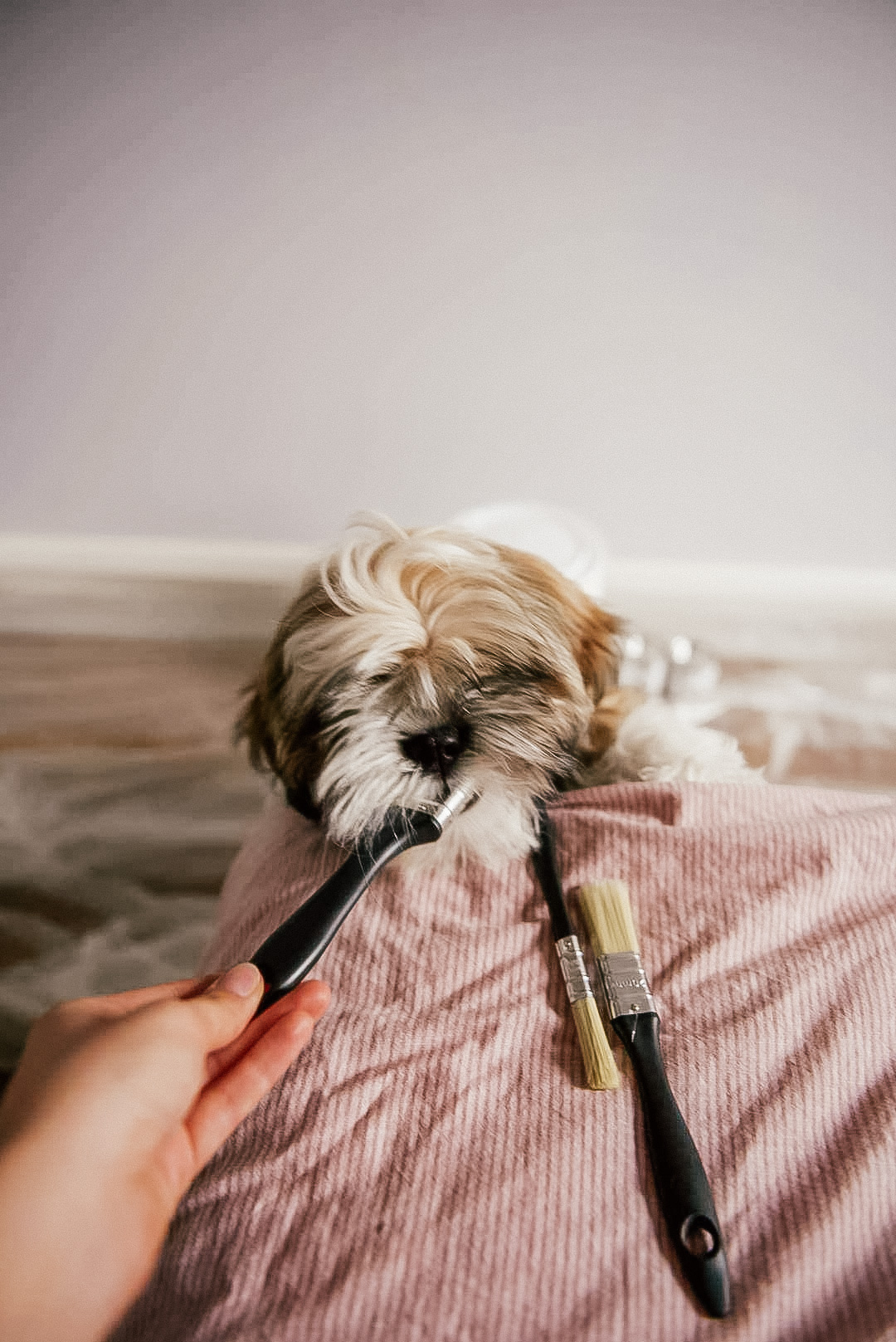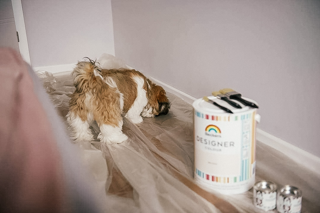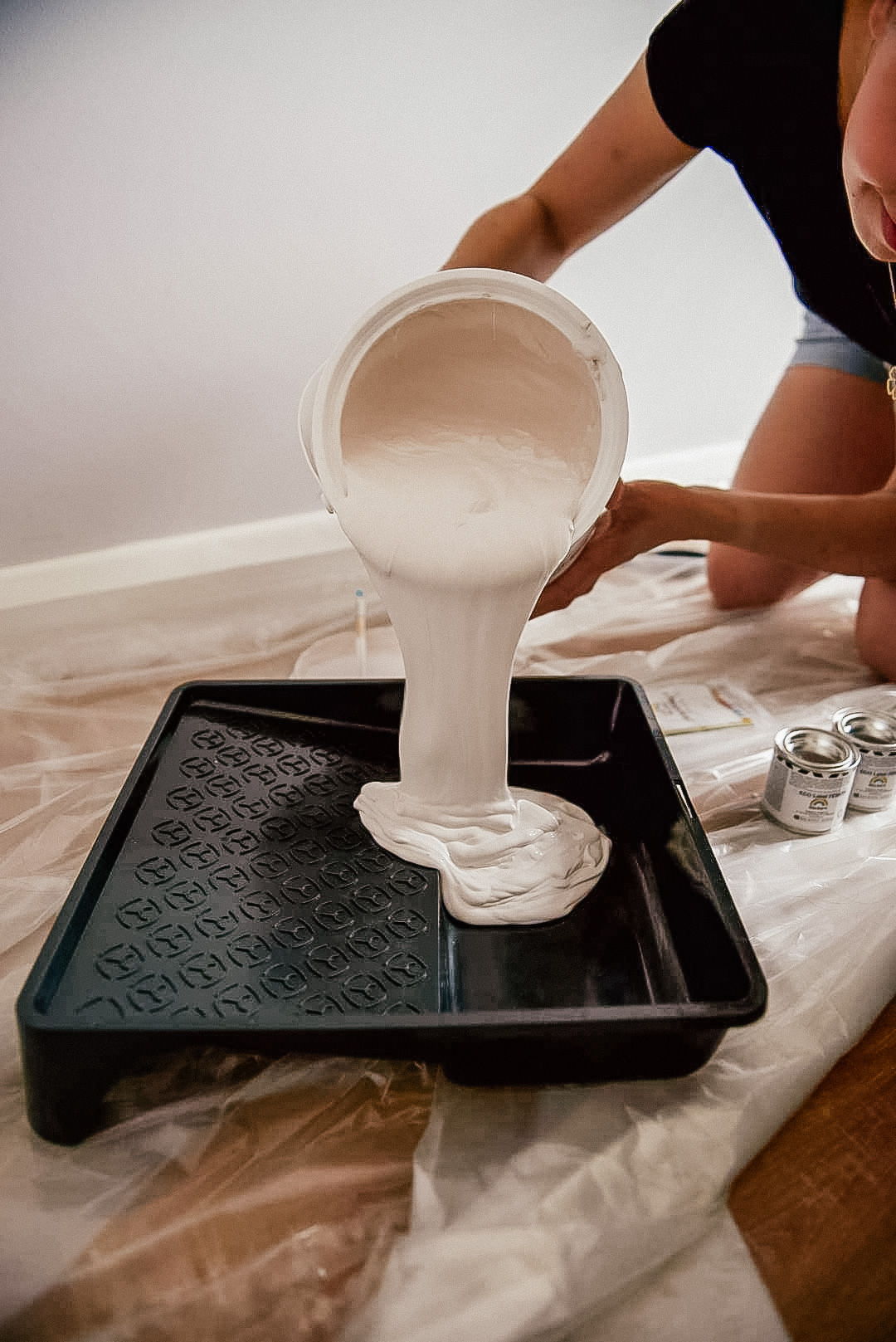 Ok. Znacie już kolor farby, którą wybrałam, więc pewnie zapytacie mnie (bo pytała mnie o to już koleżanka) jak ogarnąć taką metamorfozę samodzielnie i co kupić poza farbą. To proste – musicie mieć folię na podłogę, wałki (najlepiej na kijku teleskopowym i jeden lub dwa mniejsze), taśmę malarską, żeby odciąć sufit (jeśli malujecie do samego sufitu – im grubszą taśmę kupicie tym lepiej). Potrzebujecie też kuwetę na farbę i drabinę, kilka godzin wolnego, chęci do zmiany i… kawy! Tak naprawdę to chyba wszystko. W jeden dzień możecie całkowicie zmienić wnętrza w których przebywacie na co dzień. Niby tak niewiele, ale uwierzcie mi – to robi ogromną różnicę!