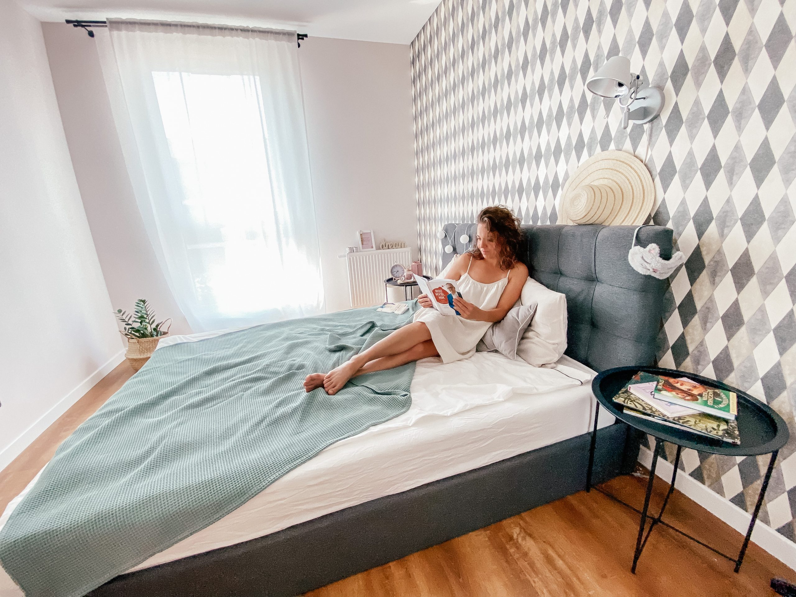 Ale wracając do TU i TERAZ. Sypialnia – aktualnie moja przestrzeń, w której uwielbiam odpoczywać od codzienności. To tutaj układam swoje myśli. To tutaj przychodzą mi do głowy najlepsze pomysły. Teraz czuję, że to miejsce jest jeszcze bardziej moje, od kiedy za zgodą właścicieli zrobiłam szybką metamorfozę na lato, by całość oddawała to, co aktualnie gra mi w duszy.