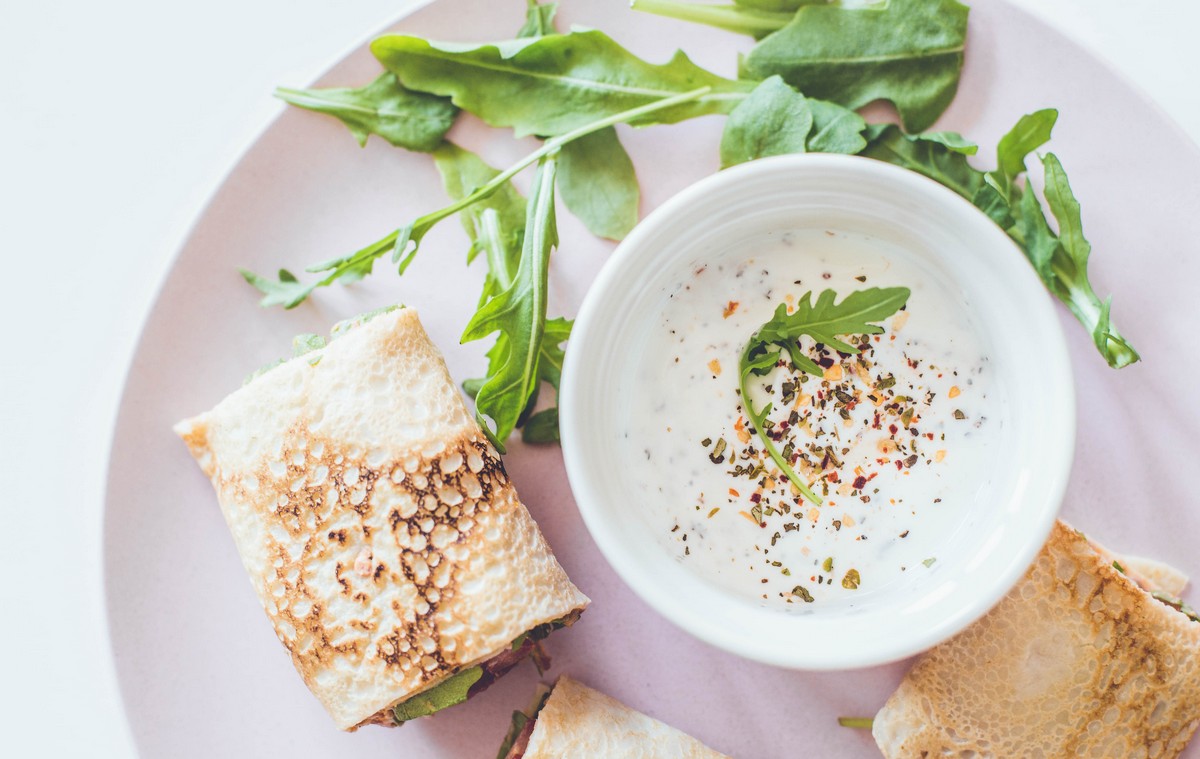 Ten przepis powstał spontanicznie kilka dni temu, kiedy rano szykowałam naleśniki dziewczynkom, a Bartek rzekł: „A co dla nas?”. Nie bardzo chciało mi się lecieć do sklepu, a lodówka nie miała zbyt wielkiej zawartości. Pozostałość sera fety, po wizycie przyjaciół, mleko od kokosowej krowy, oliwki, które mam zawsze, rukola i pomidor. Zajrzałam jeszcze do swoich zapasów i znalazłam pomidory suszone i już wtedy pomyślałam sobie, że coś może z tego wyjść. Nie bardzo tylko wiedziałam co. Nad próbą ogarnięcia, co dobrego wyjdzie z tych składników, myślałam około 15 minut. Wtem mnie olśniło. Wytrawne naleśniki. To musi się udać.