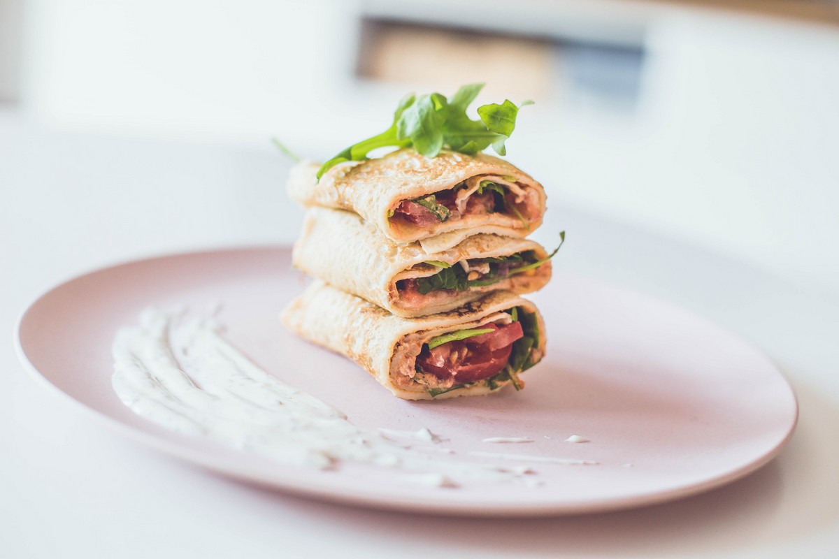 Ten przepis powstał spontanicznie kilka dni temu, kiedy rano szykowałam naleśniki dziewczynkom, a Bartek rzekł: „A co dla nas?”. Nie bardzo chciało mi się lecieć do sklepu, a lodówka nie miała zbyt wielkiej zawartości. Pozostałość sera fety, po wizycie przyjaciół, mleko od kokosowej krowy, oliwki, które mam zawsze, rukola i pomidor. Zajrzałam jeszcze do swoich zapasów i znalazłam pomidory suszone i już wtedy pomyślałam sobie, że coś może z tego wyjść. Nie bardzo tylko wiedziałam co. Nad próbą ogarnięcia, co dobrego wyjdzie z tych składników, myślałam około 15 minut. Wtem mnie olśniło. Wytrawne naleśniki. To musi się udać.